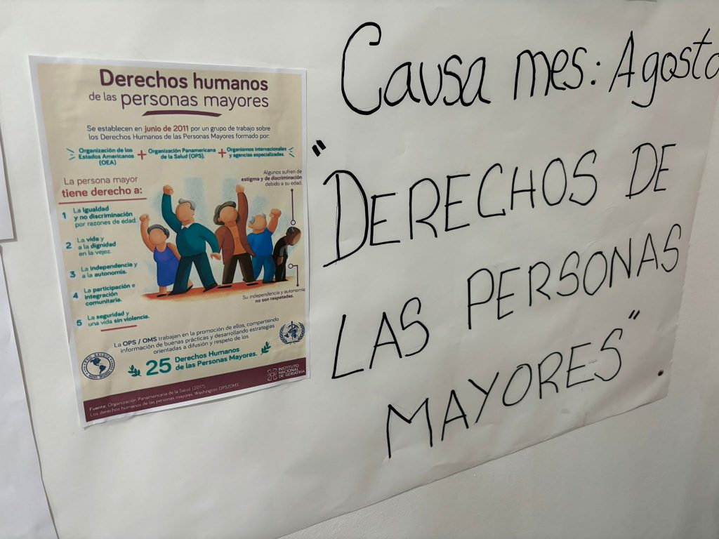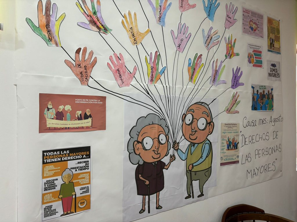 Continuamos en este proyecto, en el cual, dedicamos a cada mes una causa realizando una charla, un taller de manualidades y finalmente la exposición de un mural. Este mes de agosto lo dedicamos a los derechos de las personas mayores, reflexionando con nuestros residentes sobres cuáles son y plasmándolos a través de una manualidad.