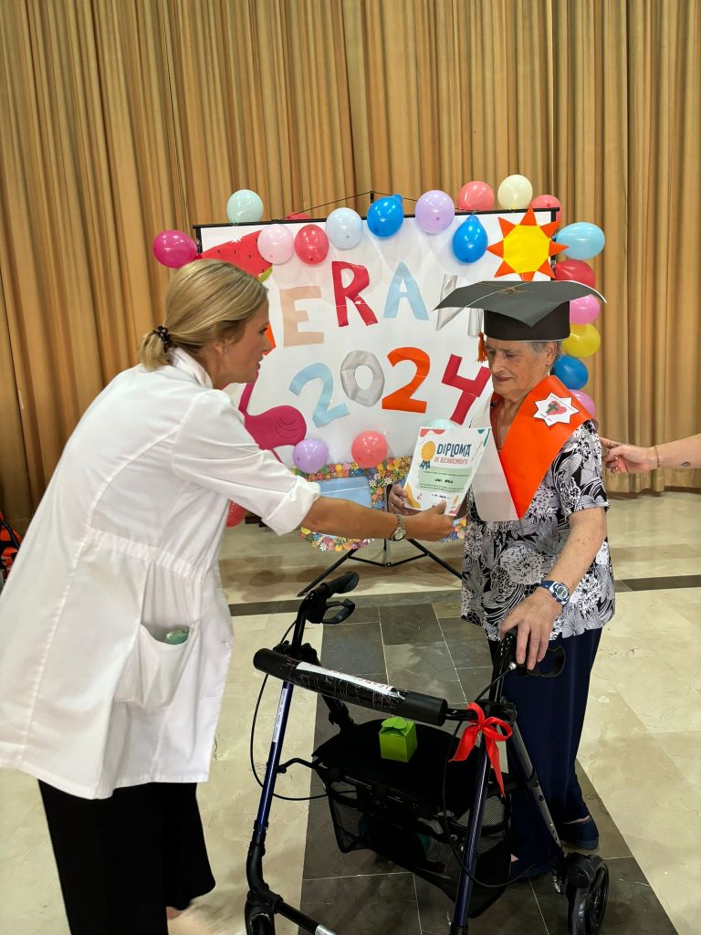 Hoy hemos estado de celebración homenajeando a nuestros mayores por su participación en todos los talleres, su esfuerzo, su dedicación, entusiasmo y buen humor que hacen de nuestra residencia un lugar más alegre, vital y unido. Nuestra particular “graduación” ha hecho sonreír mucho a nuestros residentes, a los que se les ha entregado sus gorritos,