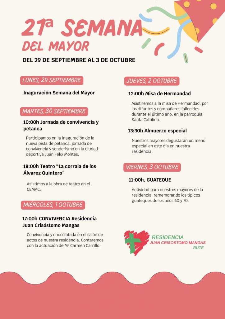 Con motivo de la Semana del Mayor, hoy hemos tenido un día lleno de actividades. Por la mañana, a pesar de los cambios de la actividad programada debido al tiempo, realizamos en nuestro salón de actos un coloquio sobre varios cortometrajes dedicados a las personas mayores, donde nuestros residentes pudieron expresar sus opiniones. Por la […]