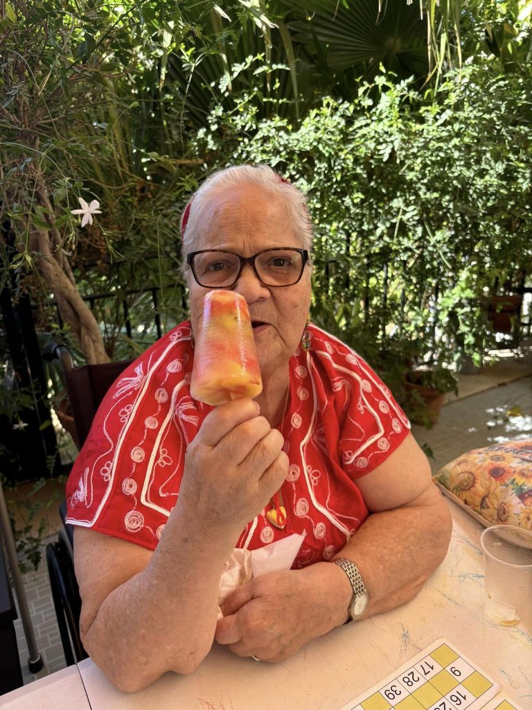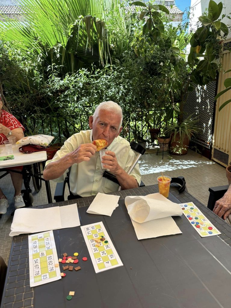 Hoy disfrutamos de una mañana fresquita en nuestro patio jugando al bingo y degustando los polos de frutas que realizamos en el taller de cocina del pasado miércoles que han quedado buenísimos!