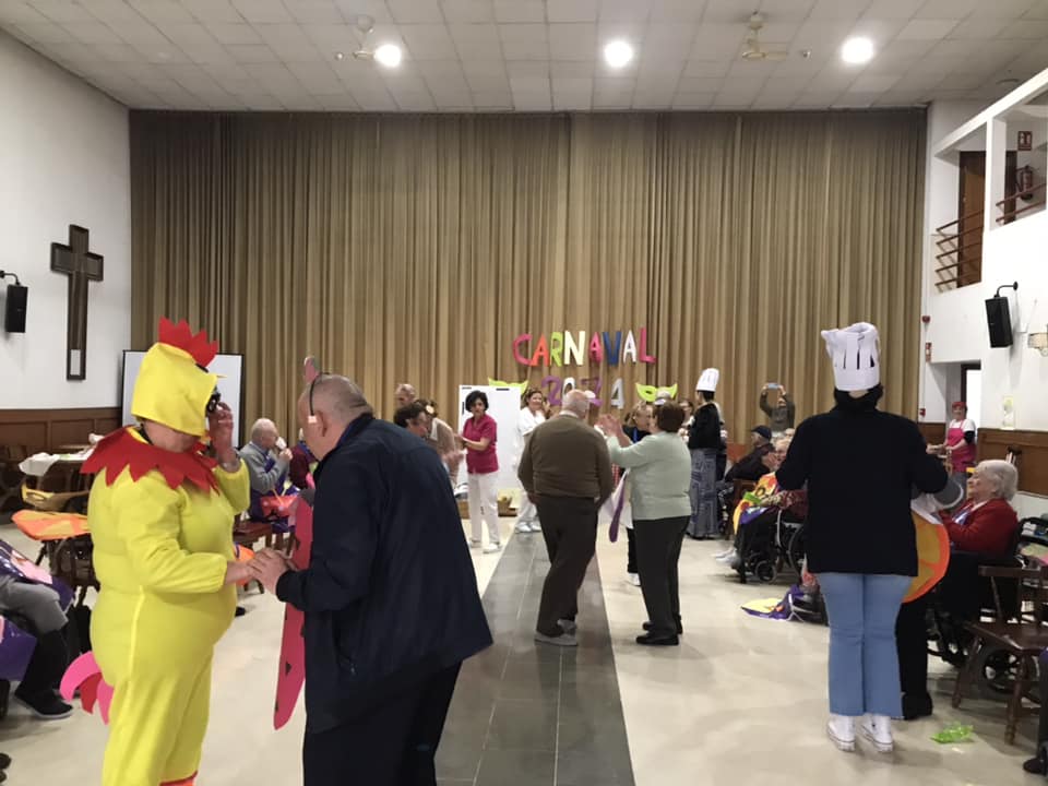 Damos comienzo a esta festividad que tanto nos gusta con una gran fiesta en nuestra residencia, llena de mucho baile, risas y alegría. Nuestros mayores se disfrazan de cocineros y alimentos (huevo frito, pizza, queso, fresa, naranja y uva), elaborados por ellos mismos en los talleres de manualidades. Se realiza un concurso de cocina, desafiando a nuestros residentes a realizar las mejores brochetas de fruta, que serán valoradas por el jurado más famoso de la televisión, Pepe, Jordi y Samantha de Masterchef. Y para finalizar, no podía faltar un gran aperitivo.