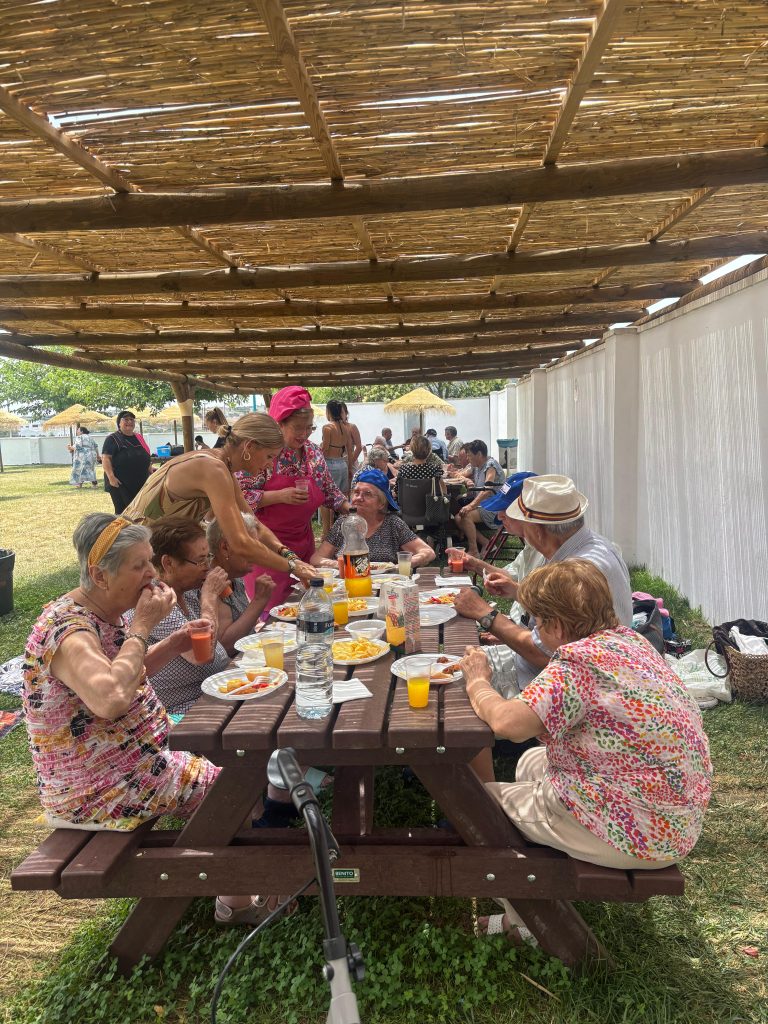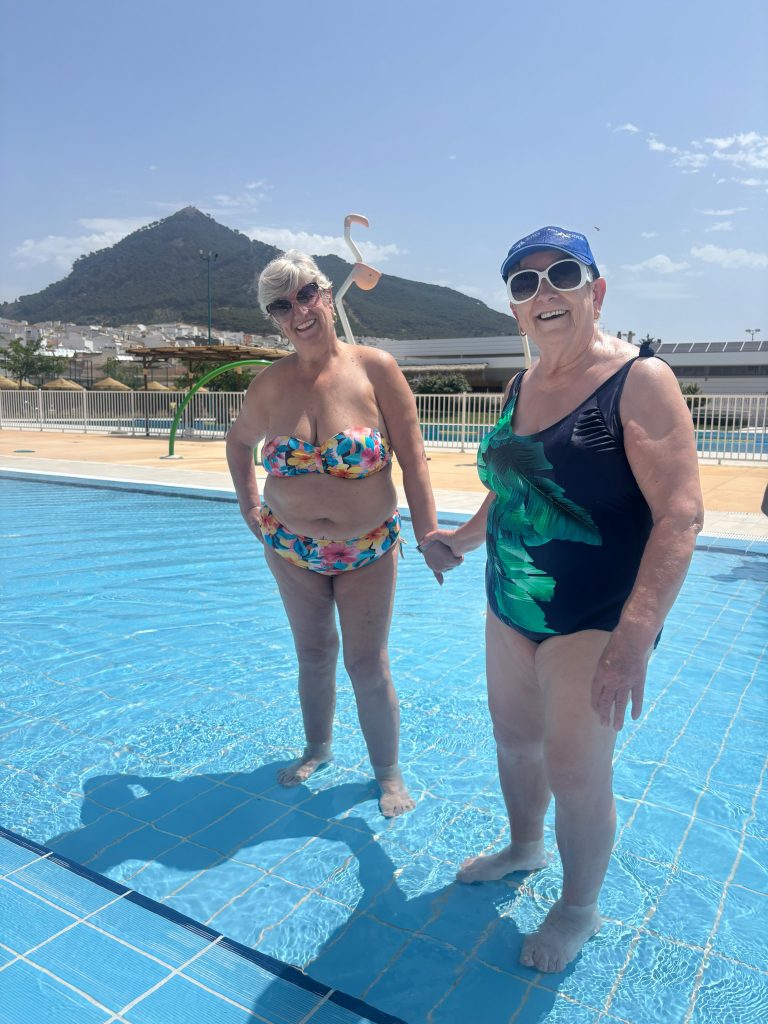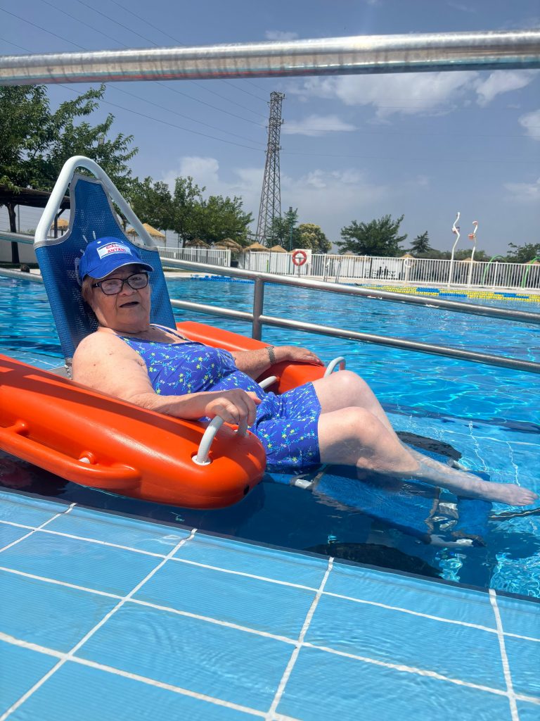 Hoy disfrutamos de un día en la piscina municipal. Nuestros mayores se llenan de vida al divertirse dándose un baño, socializando con sus compañeros/as o degustando una riquísima comida en compañía. Muy ilusionados viven este día fortaleciendo su autoestima, las relaciones en grupo y movilidad, contribuyendo a su bienestar general.