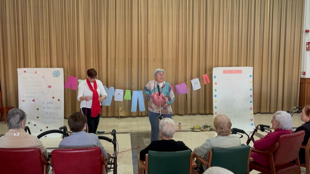 En esta mañana, tenemos el honor de recibir la visita de Teresa Flores para la celebración del día del libro, narrando e interpretando, diferentes y originales cuentos interactivos a través de varios elementos, como cuerdas, lana u origami, que hacen disfrutar a nuestros/as mayores remomerando momentos de su infancia.