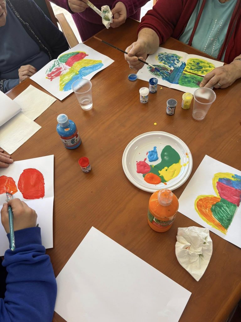 En esta mañana soleada de sábado, nos visitan los chicos y las chicas de la Asociación Cuenta Conmigo de Rute, para enseñarnos un taller de pintura. Nuestros/as mayores disfrutan de una jornada dinámica y alegre junto a ellos/as, realizando juntos esta manualidad que se expone en nuestro tablón del salón de actos.