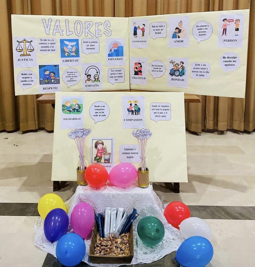 Hoy hemos tenido el placer de recibir la visita en nuestra residencia de los alumnos y alumnas del CEIP Ruperto Fernández, para poner en práctica el tema con el que están trabajando en su centro: los VALORES. Tras una introducción sobre qué son los valores y cuáles son algunos de ellos, realizamos una dinámica muy divertida que les hace reflexionar y llevar a la práctica los diferentes valores estudiados, con los mayores. Para despedirnos, juntos, mayores y niños cantamos y bailamos una canción.