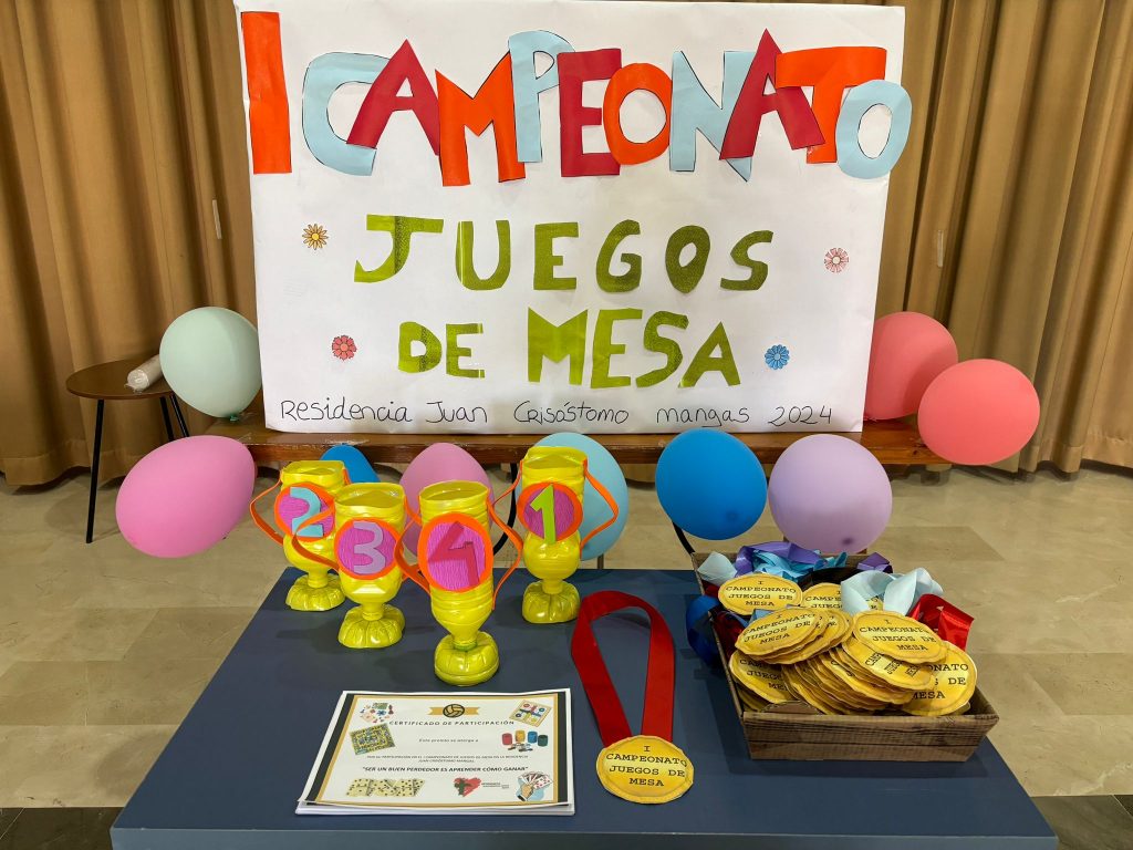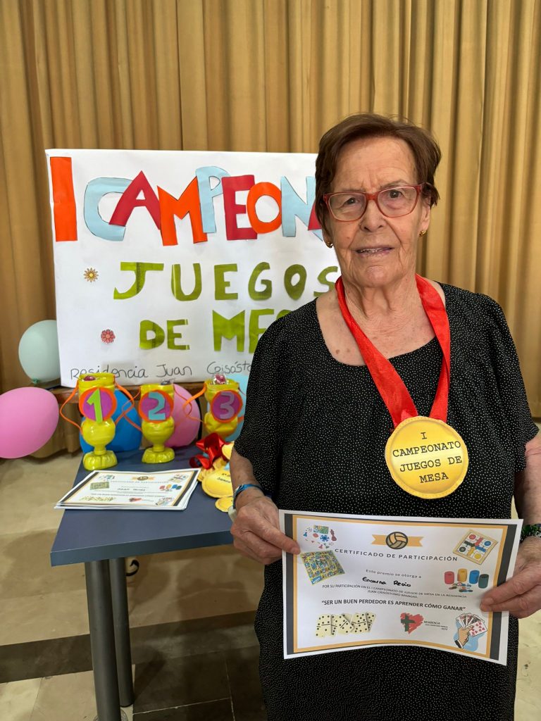 Hoy hemos celebrado en nuestra residencia el primer campeonato de juegos de mesa. Nuestros residentes se han desafiado en juegos como el dominó, el parchís, la oca o las cartas. Finalmente, se han repartido medallas y diplomas para todos los participantes y copas para los ganadores