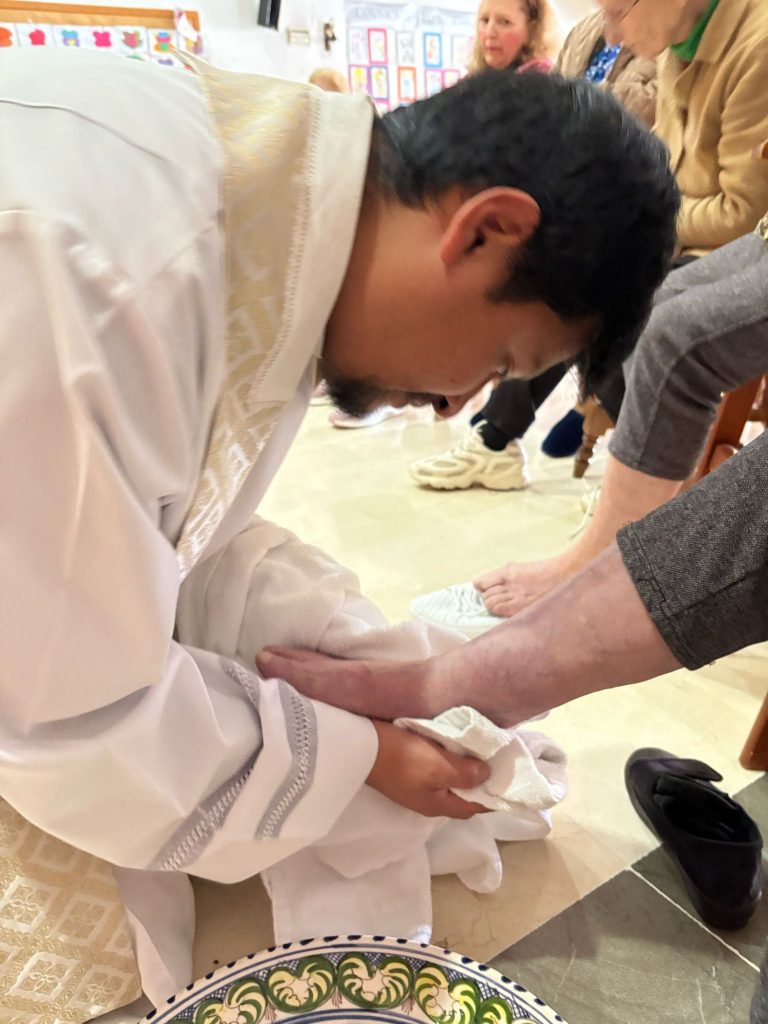 En este Jueves Santo, nos acompaña nuestro párroco Don Bernard, para llevar a cabo el ritual del lavado de pies a nuestros/as mayores, simbolizando los doce apóstoles, tal como lo hizo Jesús. A través de este acto, se representa el servicio y amor que Jesús nos enseña.