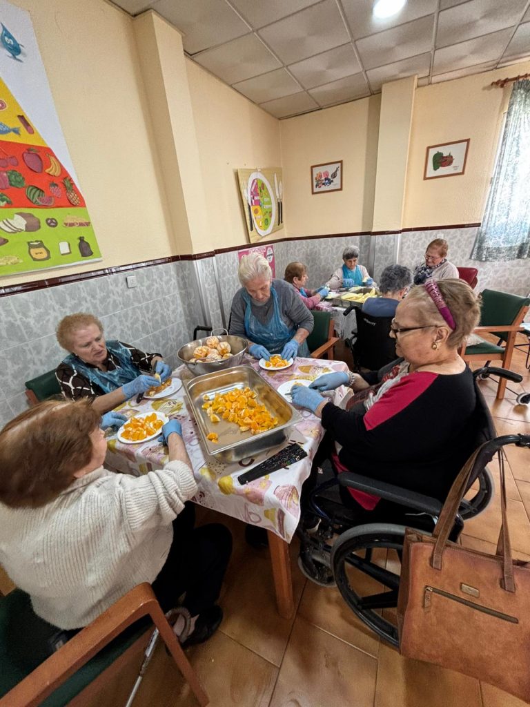 Un pequeño grupo de nuestras residentes también se animó a pasar por el taller para echar una mano, ayudando a preparar la fruta ![]()