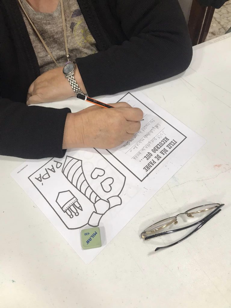 Para festejar este día, nuestros mayores reflexionan sobre un recuerdo con su padre, dejándolo plasmado en una tarjeta y manualidad elaborados por ellos mismos.