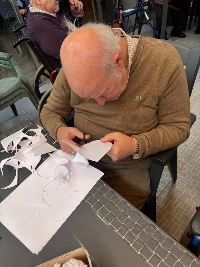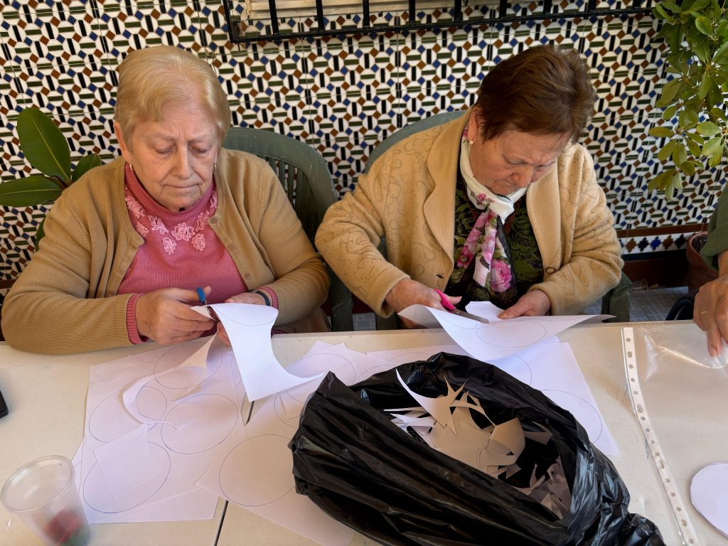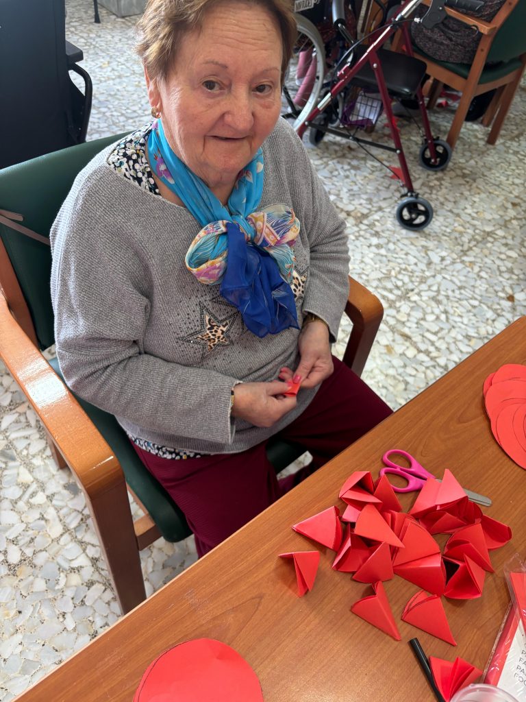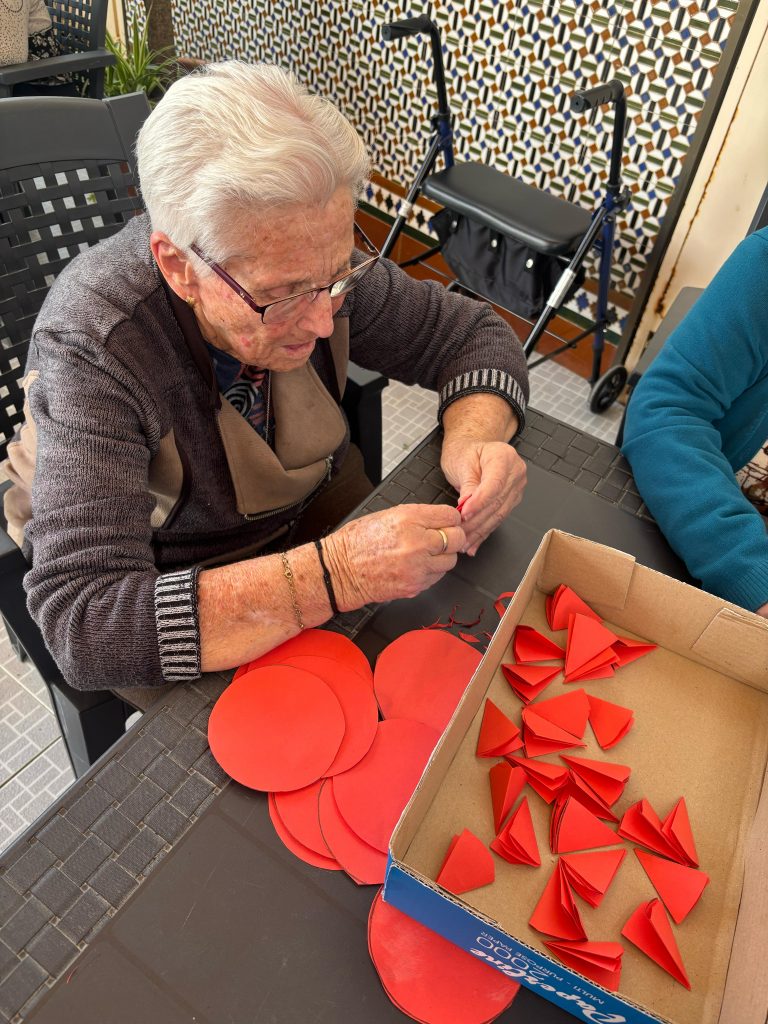 Además, os dejamos algunos momentos de tantos y tantos días de dedicación y esfuerzo, en los cuales nuestros/as mayores con mucha paciencia, ilusión y amor han elaborado estos preciosos claveles de papel.